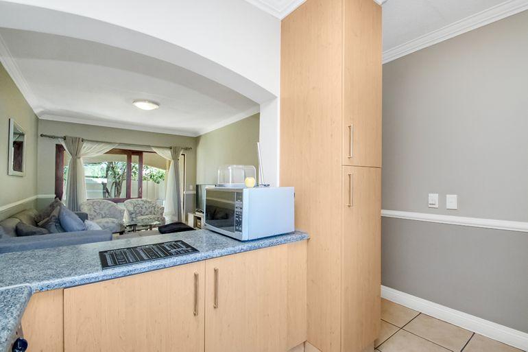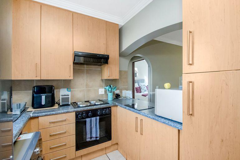 As you enter the main home, you will find the undercover patio ideal for relaxing on hot summer days. Once inside, the spacious lounge and dining room offer tiled flooring and large windows allowing plenty of natural light to fill the space. The kitchen is fitted with ample cabinet and countertop space, an eye-level oven, a gas stove top, and space for a fridge.
